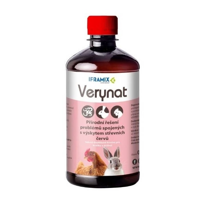 Verynat™ je přírodní doplňkové krmivo určené pro drůbež a králíky, které pomáhá řešit problémy spojené s výskytem střevních červů. Tento produkt je navržen tak, aby podpořil zdraví střev a přispěl k prevenci parazitárních infekcí. Díky pečlivě vybraným přírodním extraktům a esenciálním olejům, které pomáhají udržet střevní prostředí v optimálním stavu, je velmi efektivní nejen při prevenci, ale i při terapii v případě vyššího zamoření parazity. Jeho použití přispívá ke zlepšení celkové kondice zvířat a snižuje riziko úhynů, zejména u mladších jedinců.